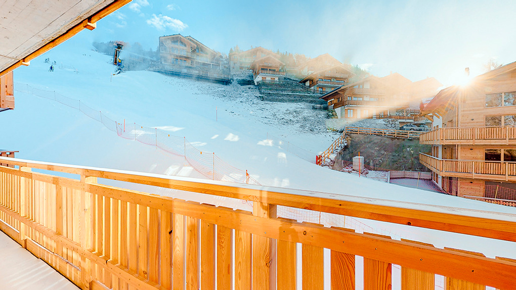 Ort: Veysonnaz. Absolute Top-Lage direkt an der Talabfahrt! Skiabfahrt vom und bis zum Haus. Hanglage mit sehr schönem Blick über den Ort ins Rhônetal. Ortsmitte, Gondel 300 m per Ski, 1 km per Pkw. Schwimmbad (Eintritt im Mietpreis enthalten) 500 m.