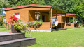 D 26.10 Bungalow 2-3 Pers.: 2-Zimmerhaus mit 28 qm Wohnfläche. Wohn-/Essraum mit Sofa (Ausziehcouch 1 Pers.), Sat-TV, moderner Esstheke, Pantryküche mit Kaffeemaschine, Wasserkocher, Toaster, 2-E-Plattenherd. Kleines Doppelzimmer mit Boxspringbetten. Bad/WC. Überdachte Terrasse mit Hängematte.