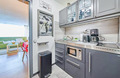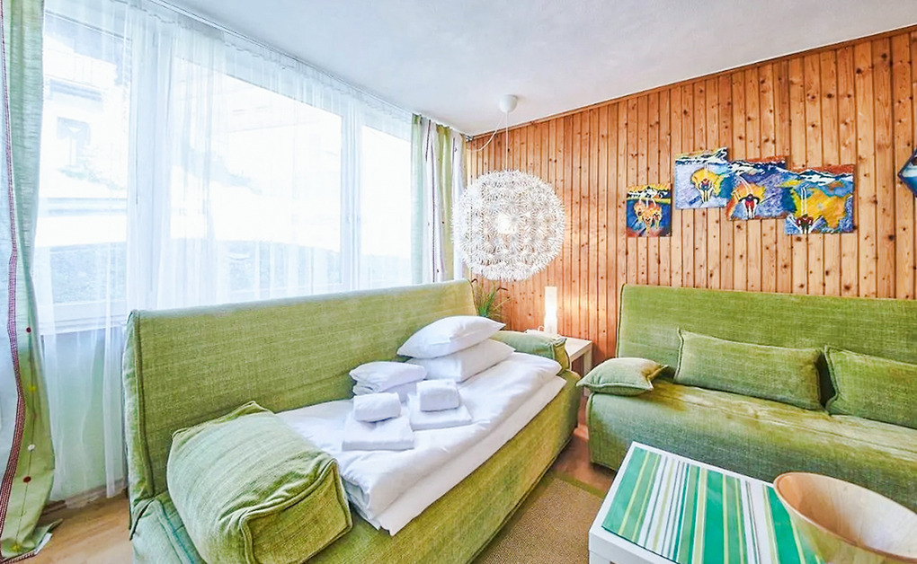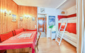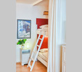 A 371.20 Wohnung 1-4 Pers.: Studio mit 38 qm Wohnfläche, 2. Etage. Schöner heller Wohn-/Essraum mit Schlafcouch (2 Pers.), Sat-TV, Esstisch, gut ausgestatteter Einbauküche (Backofen, Mikrowelle, Spülmaschine) im Eingangsbereich des Appartements, Etagenbett in Raumnische (durch Vorhang vom Wohnraum abgetrennt). Bad: Du/Bw, Wb, WC.