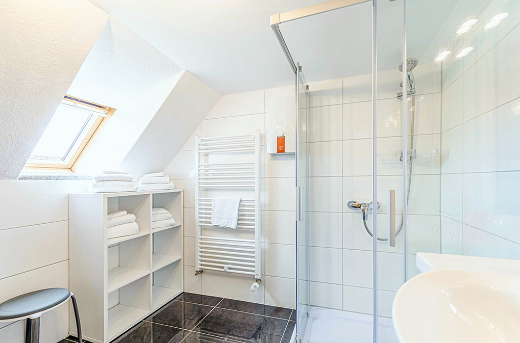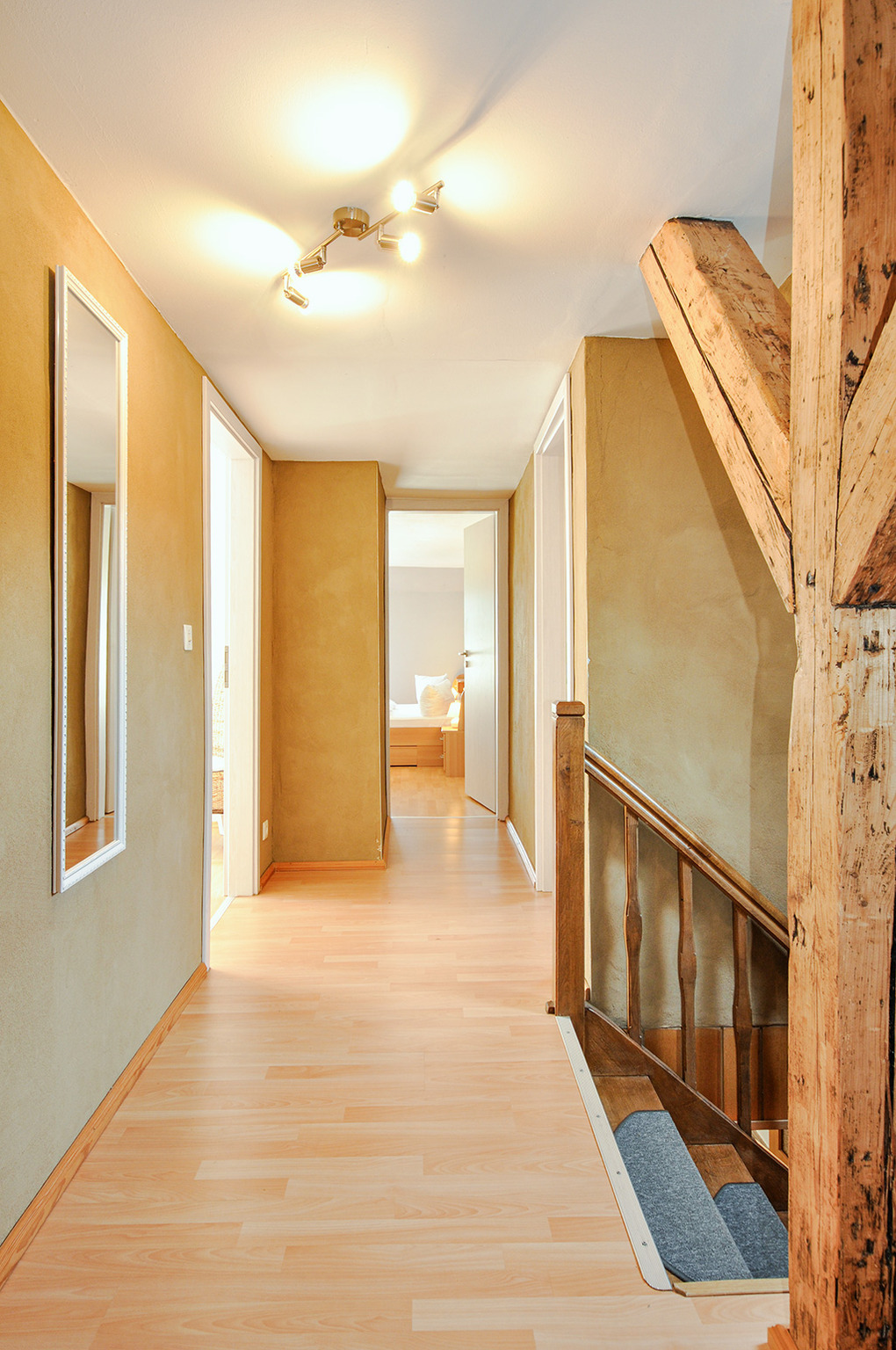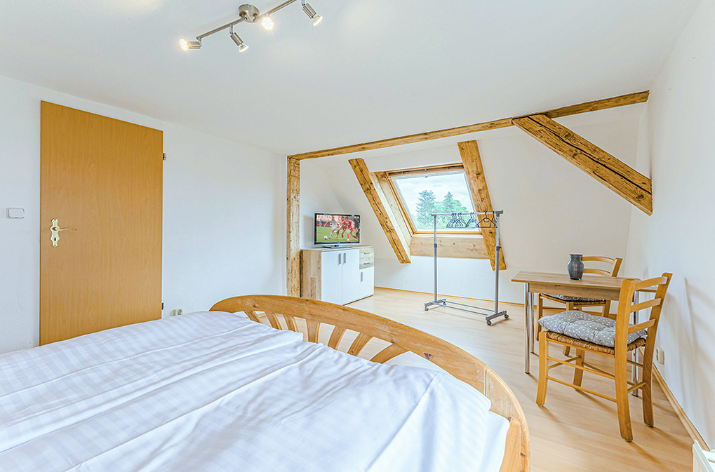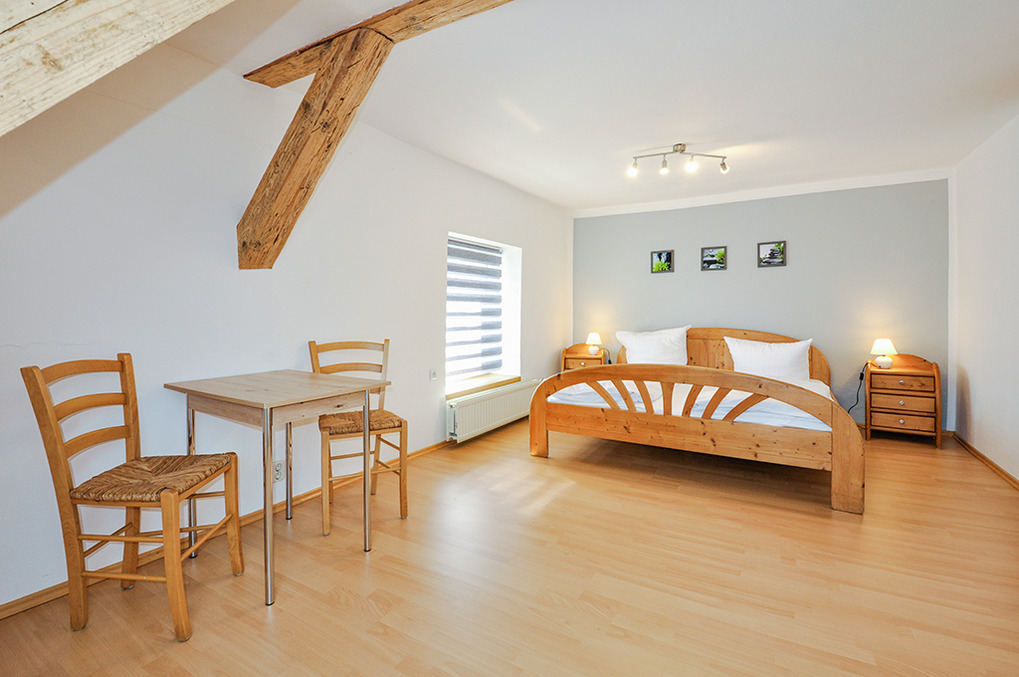 D 46.193 Ferienhaus 4-10 Pers.: 5 1/2-Zimmerhaus mit 140 qm Wohnfläche über 2 Etagen. Parterre: Flur mit Garderobe. Großzügiger Wohnraum mit Couchgarnitur (Schlafsofa 2 Pers.), Kaminofen, Sat-TV, Sitzecke. Küchen-/Essraum mit großem Esstisch, moderner Küchenzeile (Backofen, Mikrowelle, Gefrierschrank, Spülmaschine). Bad: Eck-Badewanne, Wb, WC. 1. Etage (leichte Schrägen): 1-Bettzimmer. 2 schöne Doppelzimmer mit TV. Großes 4-Bettzimmer mit Doppelbett, Schlafsofa (2 Pers.), TV. Bad: Dusche, Wb, WC. Überdachter Balkon mit schönem Blick ins Grüne.