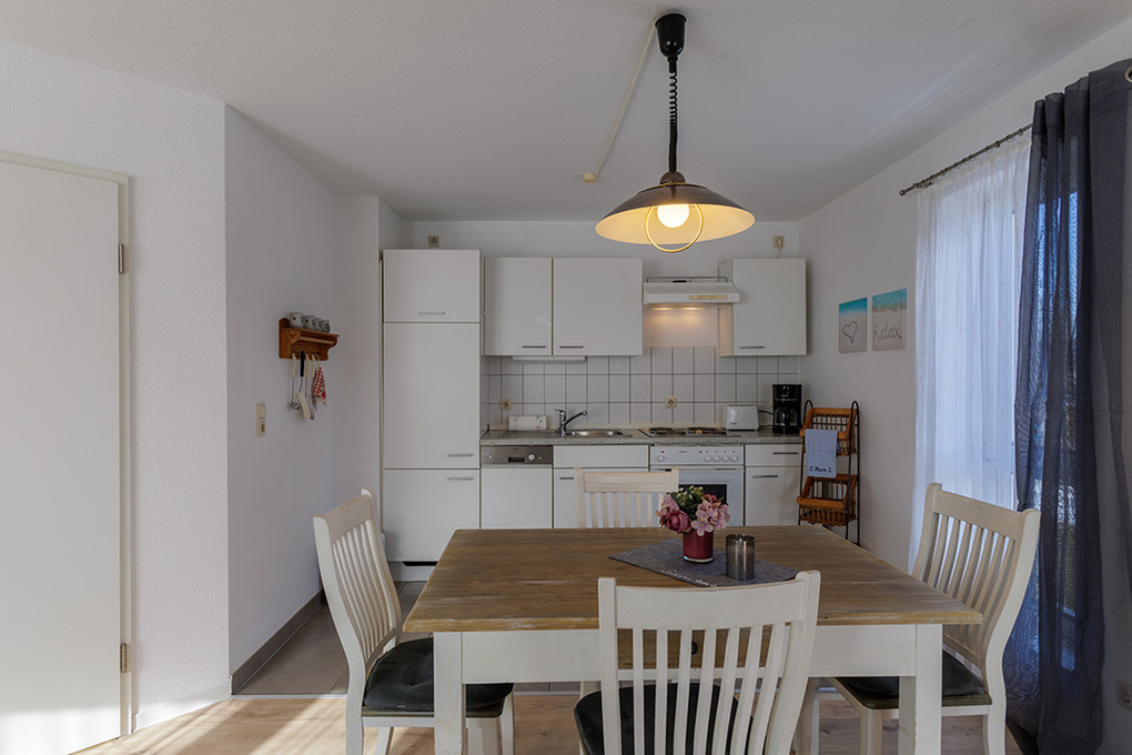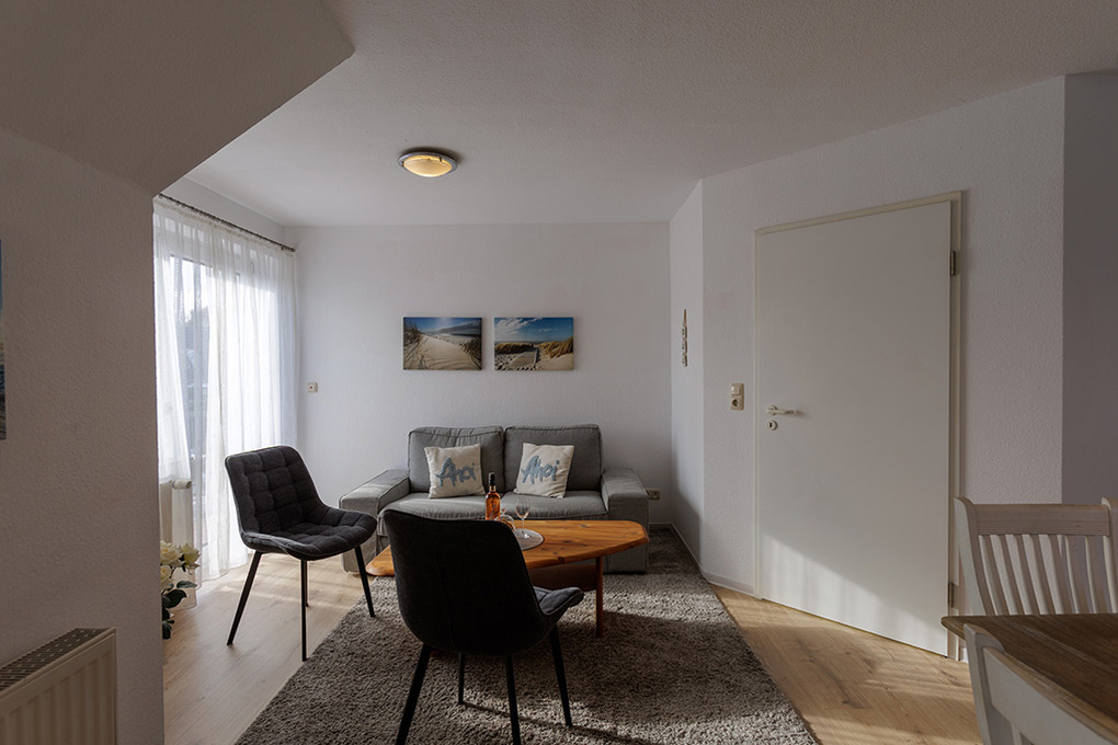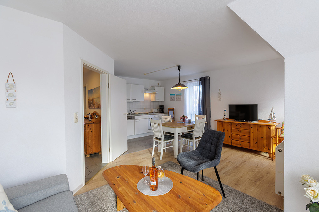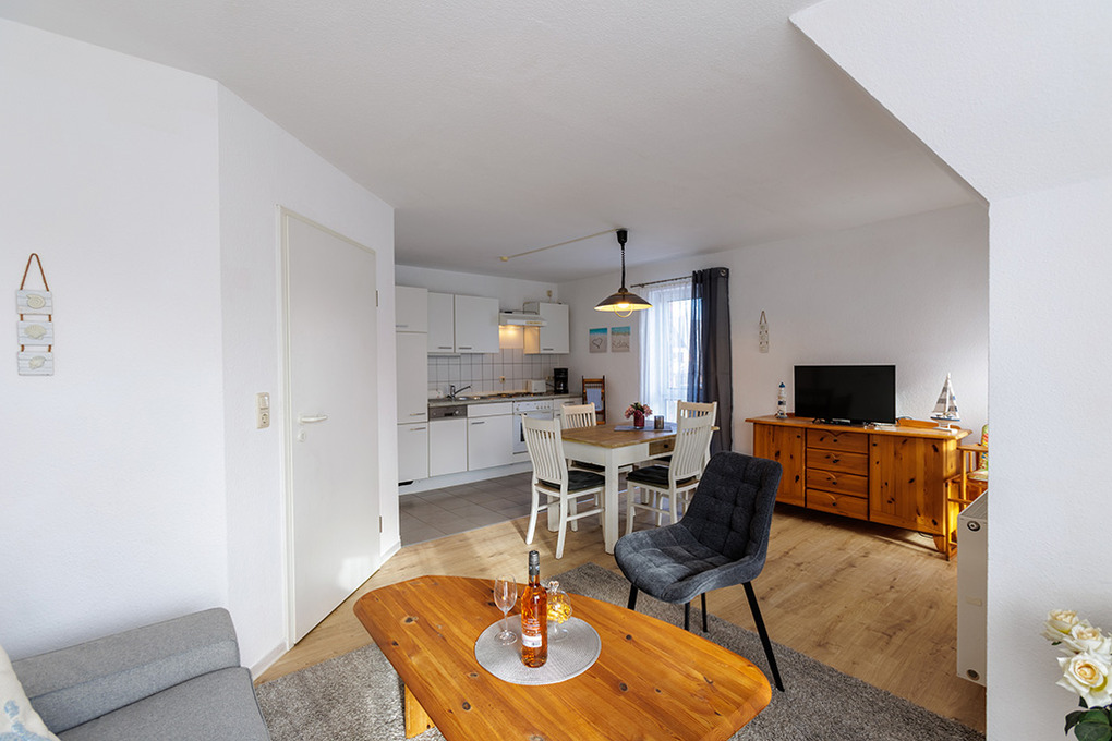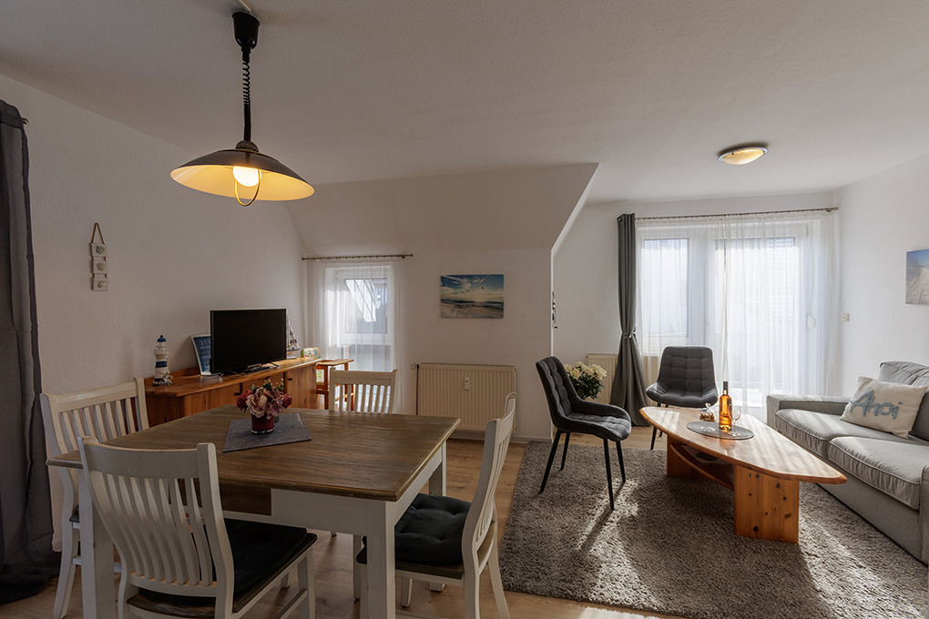 D 67.0208 Wohnung 1-4 Pers.: 3-Zimmerwohnung mit 62 qm Wohnfläche, 1. Etage. Wohn-/Essraum mit Couchgarnitur, Sat-TV, Esstisch, Küchenzeile (Backofen, Spülmaschine). 2 Doppelzimmer. Bad/WC. Balkon.