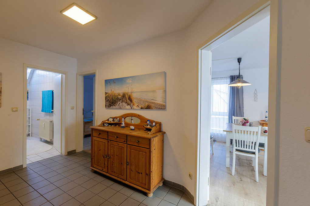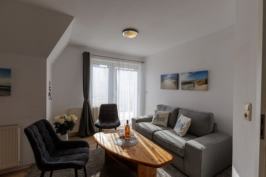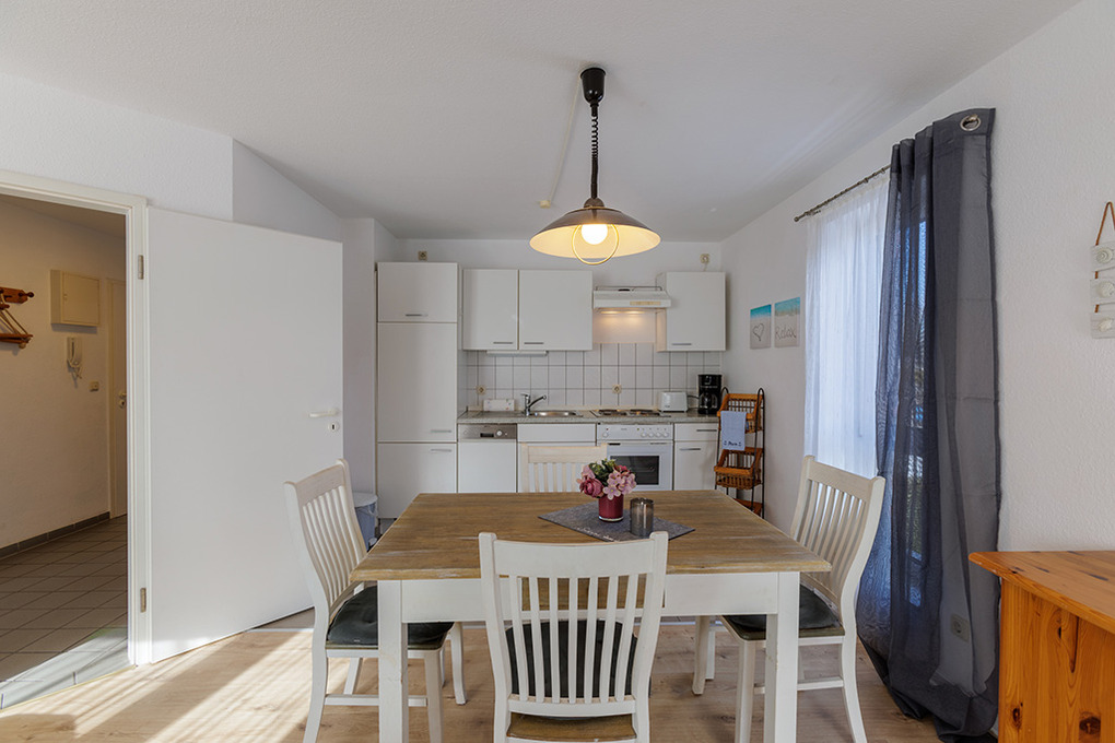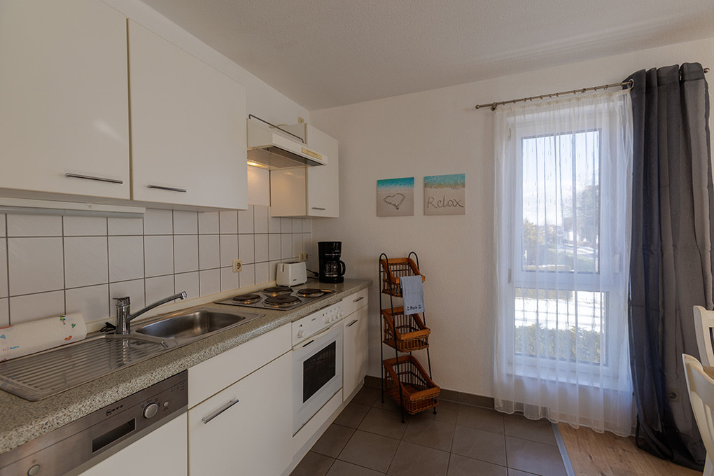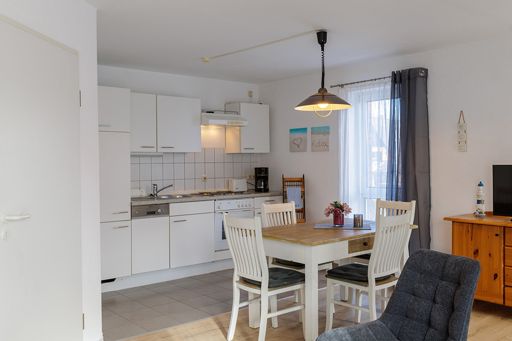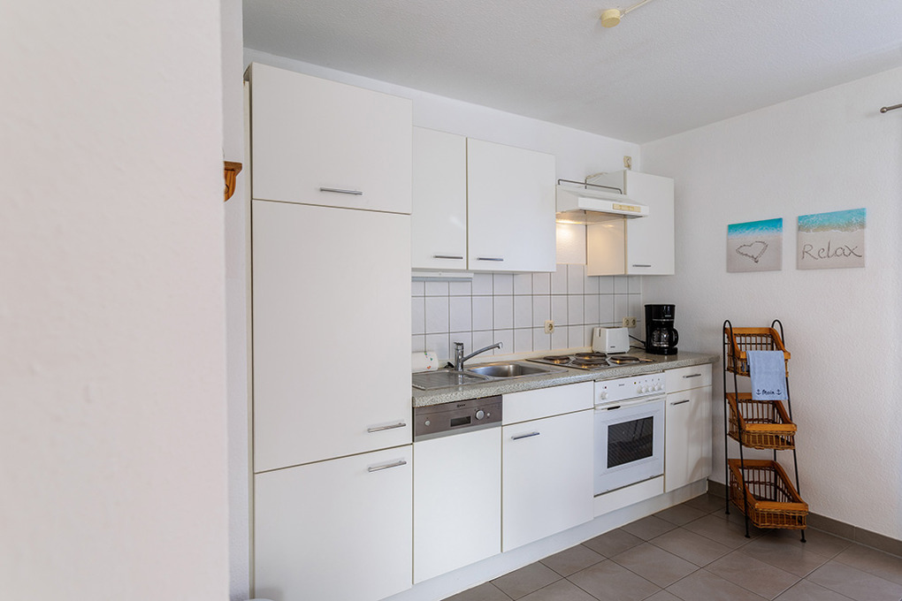 D 67.0208 Wohnung 1-4 Pers.: 3-Zimmerwohnung mit 62 qm Wohnfläche, 1. Etage. Wohn-/Essraum mit Couchgarnitur, Sat-TV, Esstisch, Küchenzeile (Backofen, Spülmaschine). 2 Doppelzimmer. Bad/WC. Balkon.