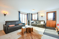 CH 384.29 Chaletwohnung 2-6 Pers.: Freundliche 2-Zimmerwohnung mit ca. 40 qm Wohnfläche, Parterre. Wohnraum mit Kaminofen, Couchgarnitur (2 x Schlafsofa für 2 Pers.), Kabel-TV, Esstisch, Küchenzeile (Backofen, Spülmaschine). Doppelzimmer. Bad: Bw/Du, Wb, WC.