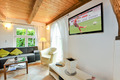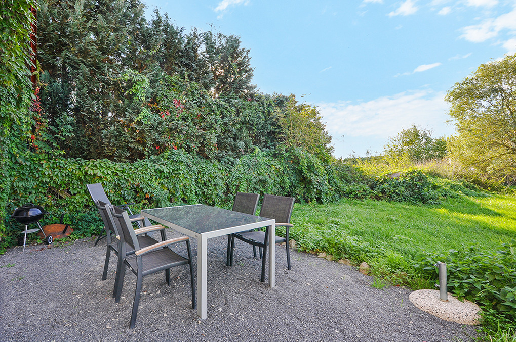 D 47.26 Ferienhaus 2-5 Pers.: 3-Zimmerhaushälfte mit ca. 90 qm Wohnfläche, Parterre. Flur mit Garderobe. Wohn-/ Essraum mit gemütlicher Sofa-Sitzecke, Sat-TV, Esstisch, moderner Einbauküche (Backofen, Spülmaschine). Doppelzimmer. 3-Bettzimmer mit Doppelbett, Einzelbett, TV. Großes Bad: Dusche, Wb, WC. Terrasse mit Sitz- und Liegemöbeln, Grill. Großer Garten mit Rasenfläche, Trampolin.