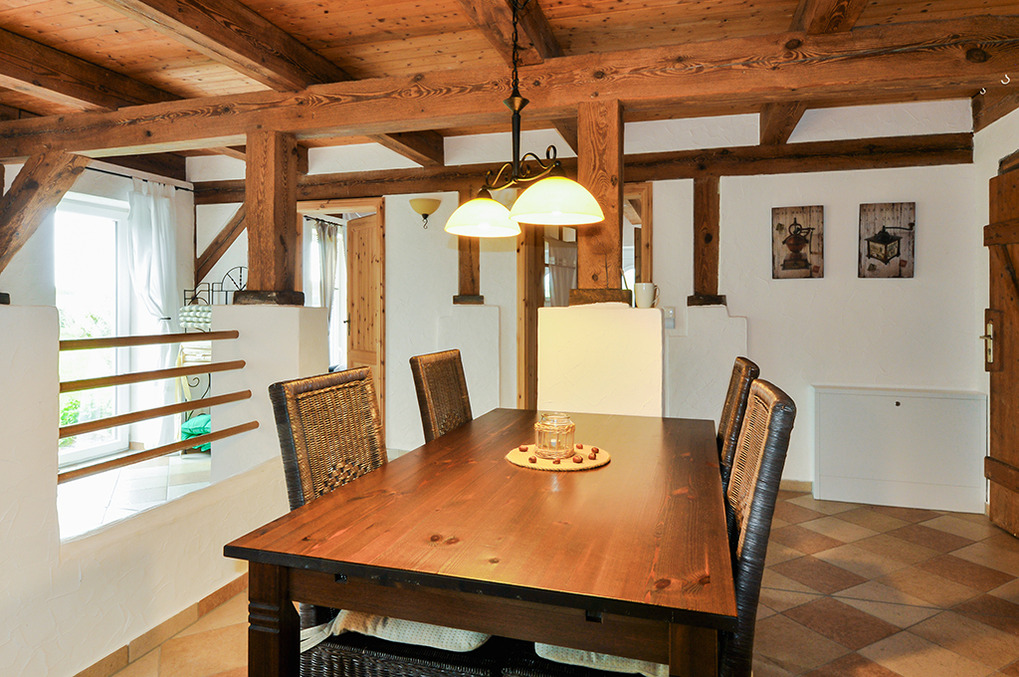 Haus: Ehemaliges Mecklenburger Bauernhaus, aufwendig saniert und umgebaut zum komfortablen Ferienhaus. Es ergeben sich zwei großzügige Doppelhaushälften, jeweils mit eigenem großen Garten und separatem Eingang. Geschmackvolle Einrichtung im Landhausstil, moderne Komfortausstattung. Internetzugang über W-Lan. Zentral-/Fußbodenheizung. Nichtraucherhaus. Große Terrasse mit Sitzmöbeln, Grill. Abgeschlossenes Gartengrundstück (ca. 800 qm) mit Trampolin. 1 Pkw-Stellplatz.