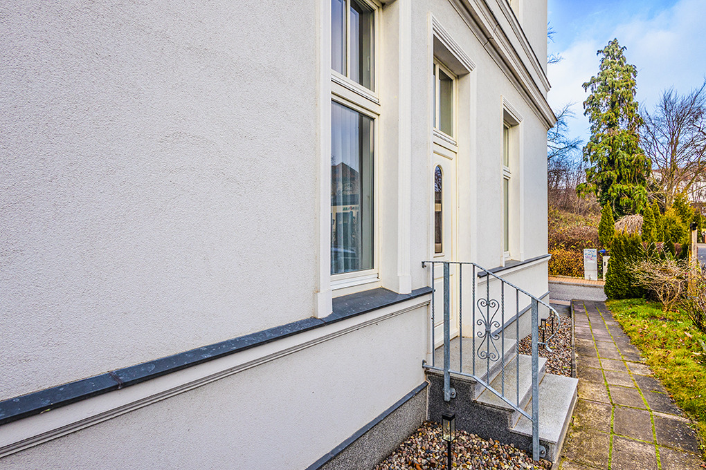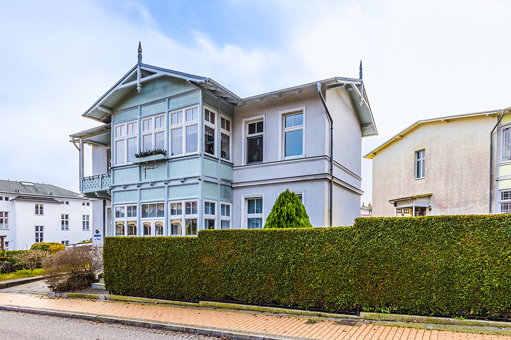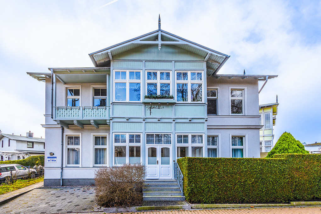 Haus : Sehr schöne Villa mit komfortablen Ferienwohnungen, im Stile der Bäderarchitektur aufwendig saniert. Gepflegte, gemütliche Einrichtung. Kostenloser Internetzugang über W-Lan . Zentralheizung. Nichtraucherwohnung. 1 Pkw-Stellplatz/Fewo. (nur für normal große Pkw, kein Pick-up / Kleinbus o.ä.). Gemeinschaftliche Fahrradabstellabstellmöglichkeit auf dem Grundstück.