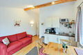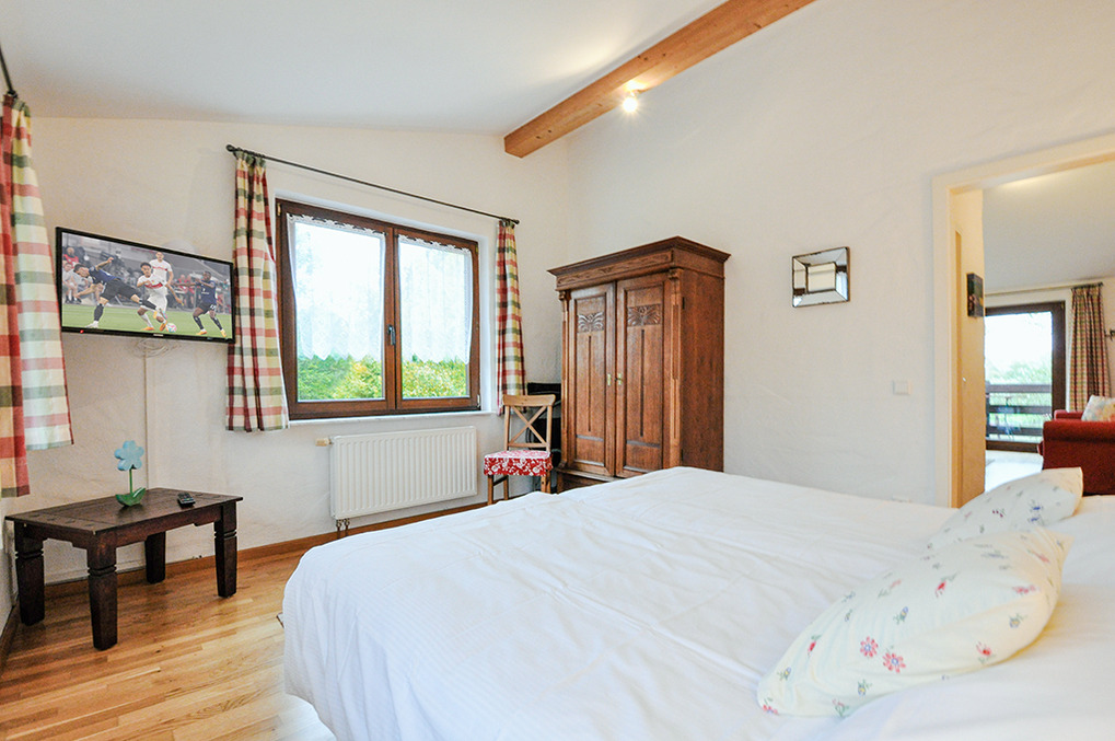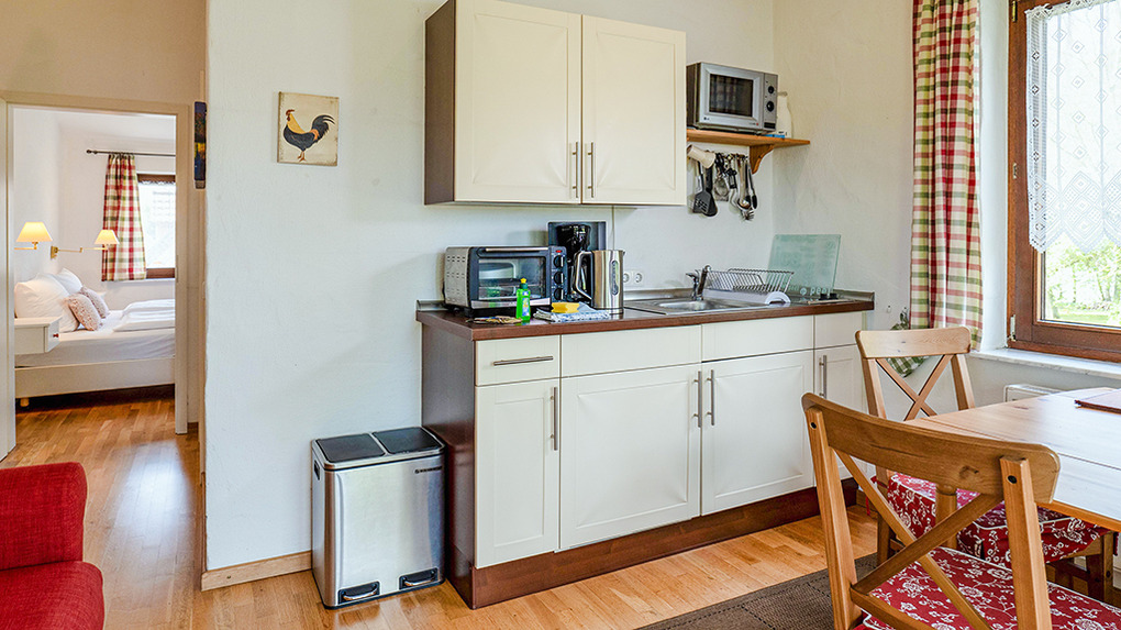 D 47.150 Wohnung 2-3 Pers.: 2-Zimmerwohnung mit 35 qm Wohnfläche, 1. Etage (eigener Zugang über Außentreppe). Wohn-/Schlafraum mit gemütlicher Sofa-Sitzecke (Schlafsofa 1 Pers), Esstisch, Pantryküche (kleiner Backofen), Balkon (Sitzmöbel, Blick über die umliegenden Felder). Doppelzimmer mit Sat-TV, schönem Blick auf den See. Bad: Dusche, Wb, WC.