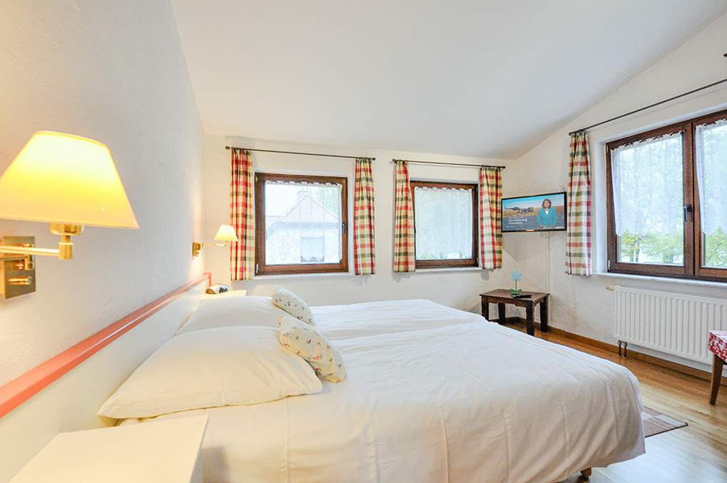 Haus: Beliebtes Gästehaus mit 7 schönen Ferienwohnungen und mehreren Hotelzimmern. Alle Fewos mit Wasserblick. Geschmackvolle Einrichtung im Landhausstil, moderne Ausstattung mit Hotel-Komfort (bezogene Betten bei Anreise, Safe, Haar-Fön, Handtuchwärmer im Bad). Internet über W-Lan. Zentralheizung. Nichtraucherwohnungen. Balkon oder Terrasse mit Sitzmöbeln. Überdachter Fahrrad-Port. 1 Pkw-Stellplatz pro Fewo (großer Parkplatz am Haus).