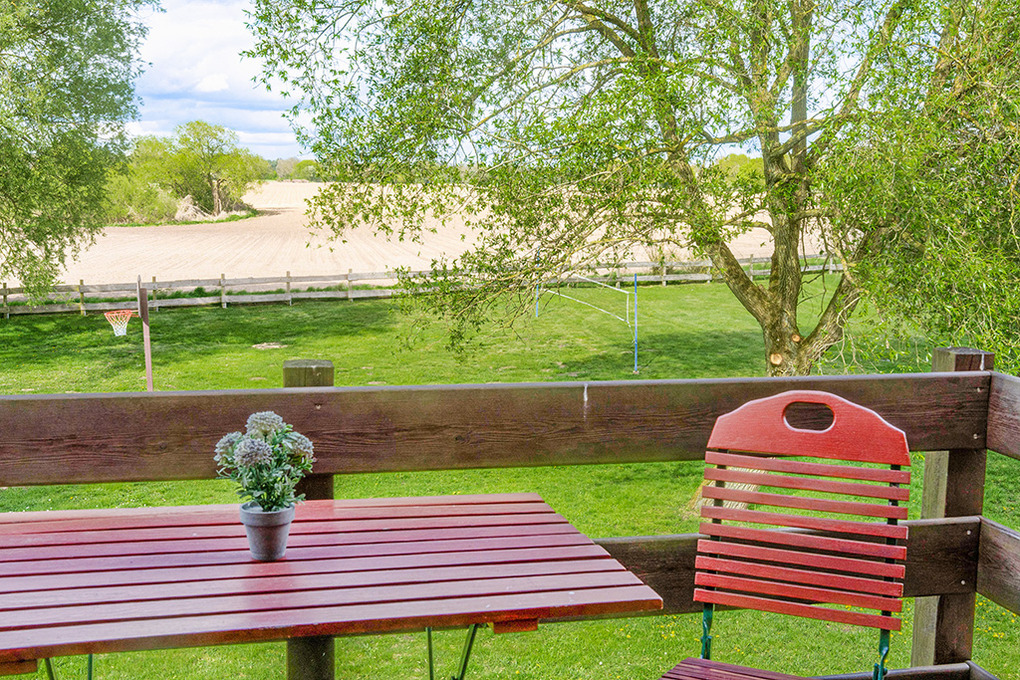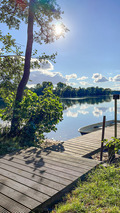 In der Anlage: Rezeption. Schöner Frühstücks- und Aufenthaltsraum mit Blick auf den See (Frühstück auf Wunsch buchbar). Spieleraum mit Kicker, Spiele-Ecke, Klavier. Weiterer Aufenthaltsraum im urigen Weinkeller mit Gewölbedecken. Überdachte Gemeinschafts-Terrasse mit Sitzmöbeln, Wasserblick. Große Spielwiese mit Trampolin, Schaukel, Sandkasten, Volleyballnetz, Basketballkorb. Schöne Badestelle mit Bänken und Liegen. Bootssteg mit 2 Ruderbooten (kostenlose Gemeinschaftsnutzung). Gegen Gebühr: 2 Kajaks, 1 SUP. Schönes Saunahaus direkt am See. Täglicher Brötchenservice. Frühstück nach Vereinbarung.