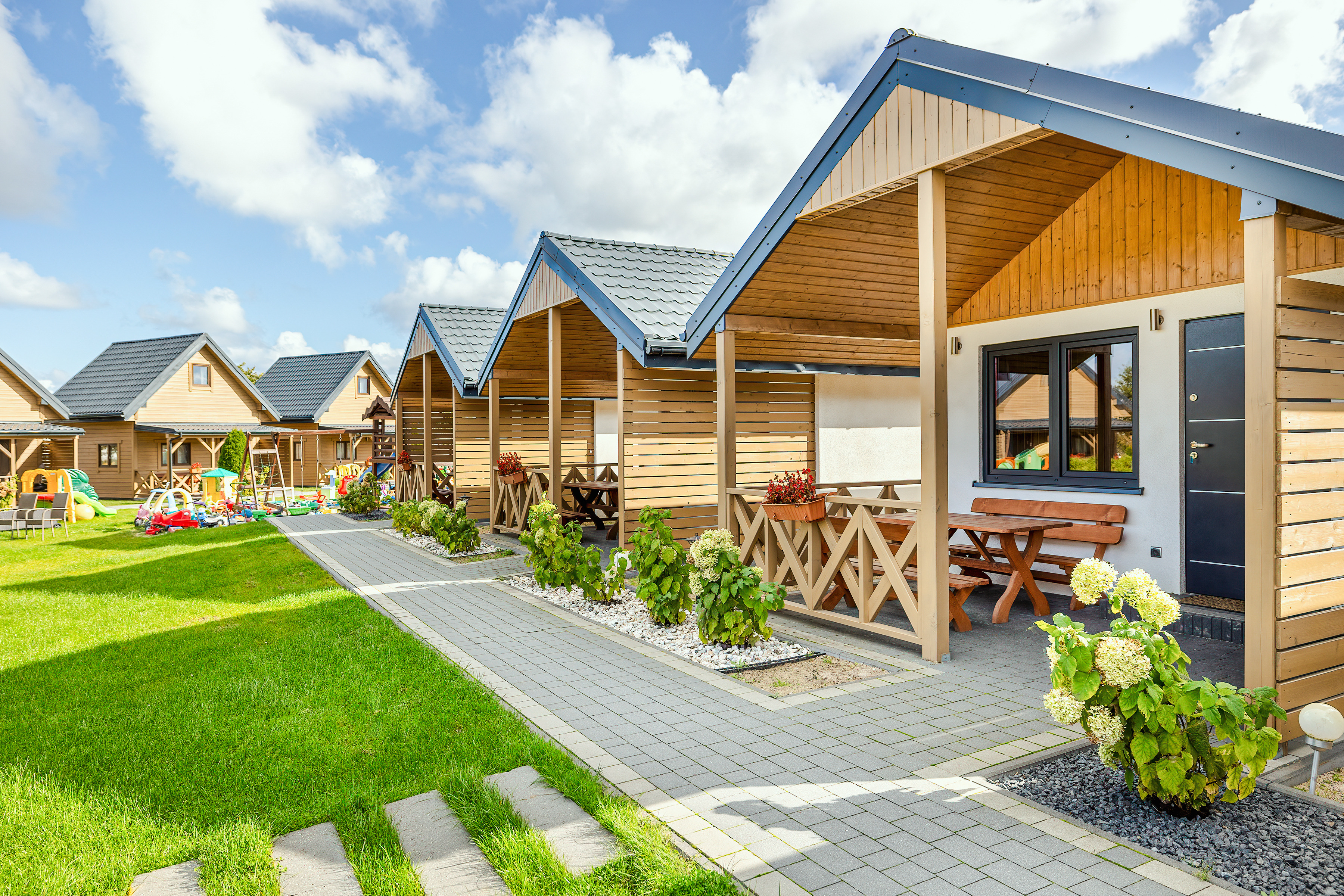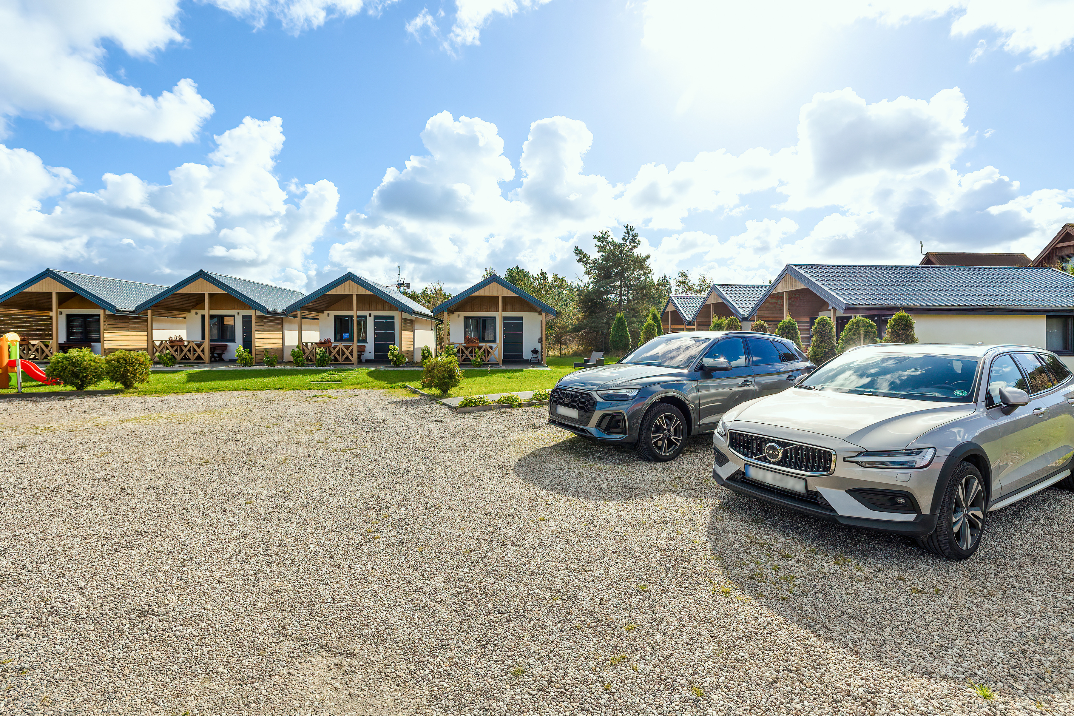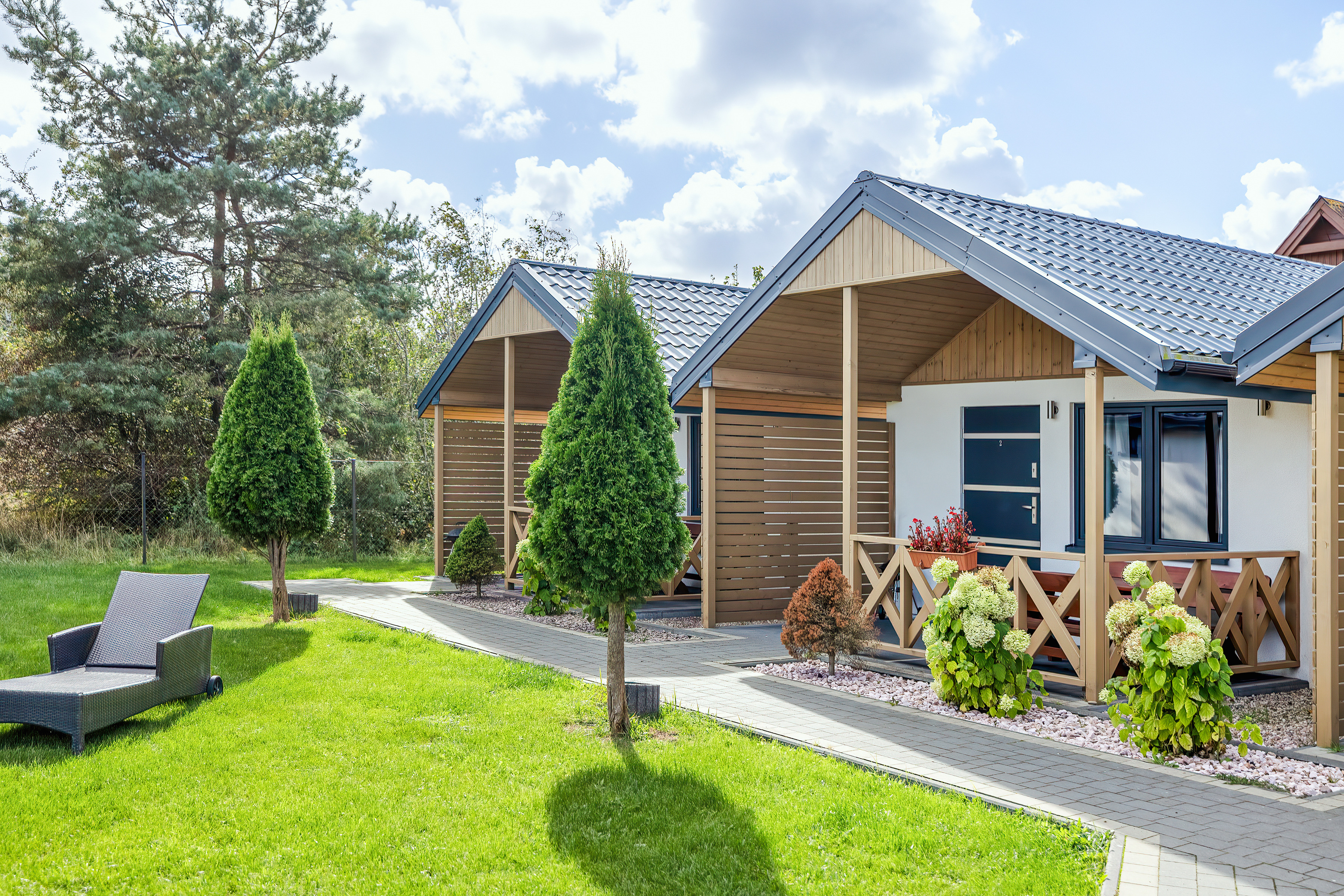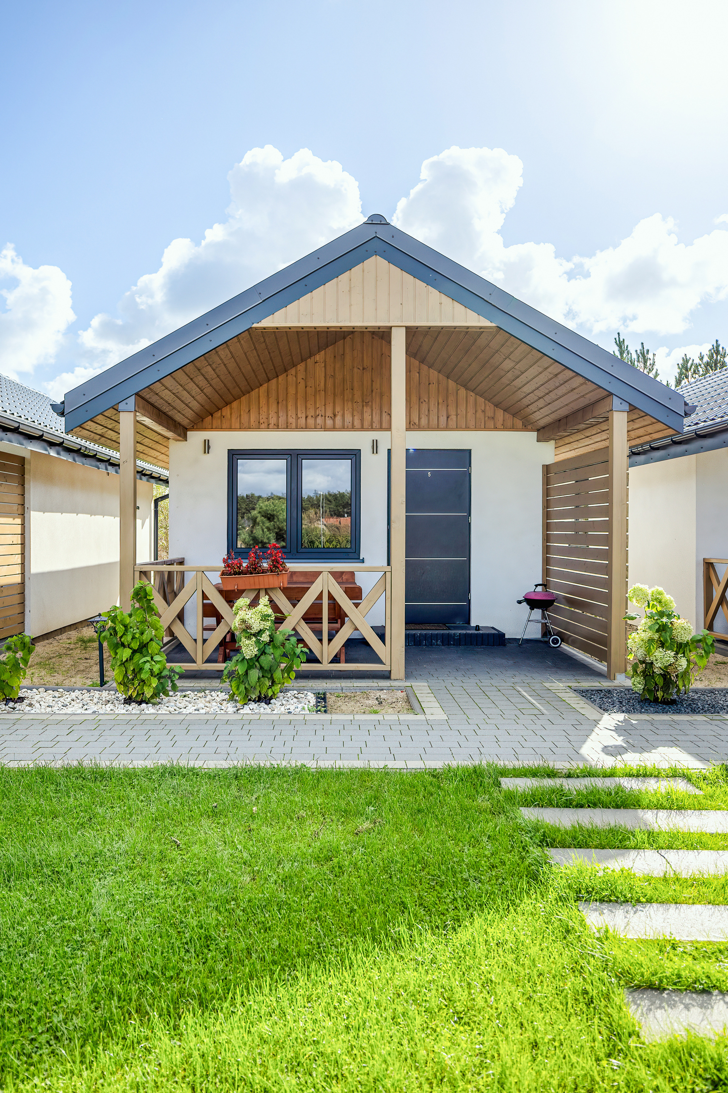Haus: Sehr gepflegte Ferienhausanlage mit 7 Ferienhäusern auf einem stilvoll angelegtem 2600 qm großen Rasengrundstück, 2021 neu erbaut. In der Anlage: Kinderspielplatz mit Schaukel, Rutsche, kleinem Klettergerüst, Trampolin, Sandkasten. Fahrradverleih (nach Verfügbarkeit, Gebühr).
