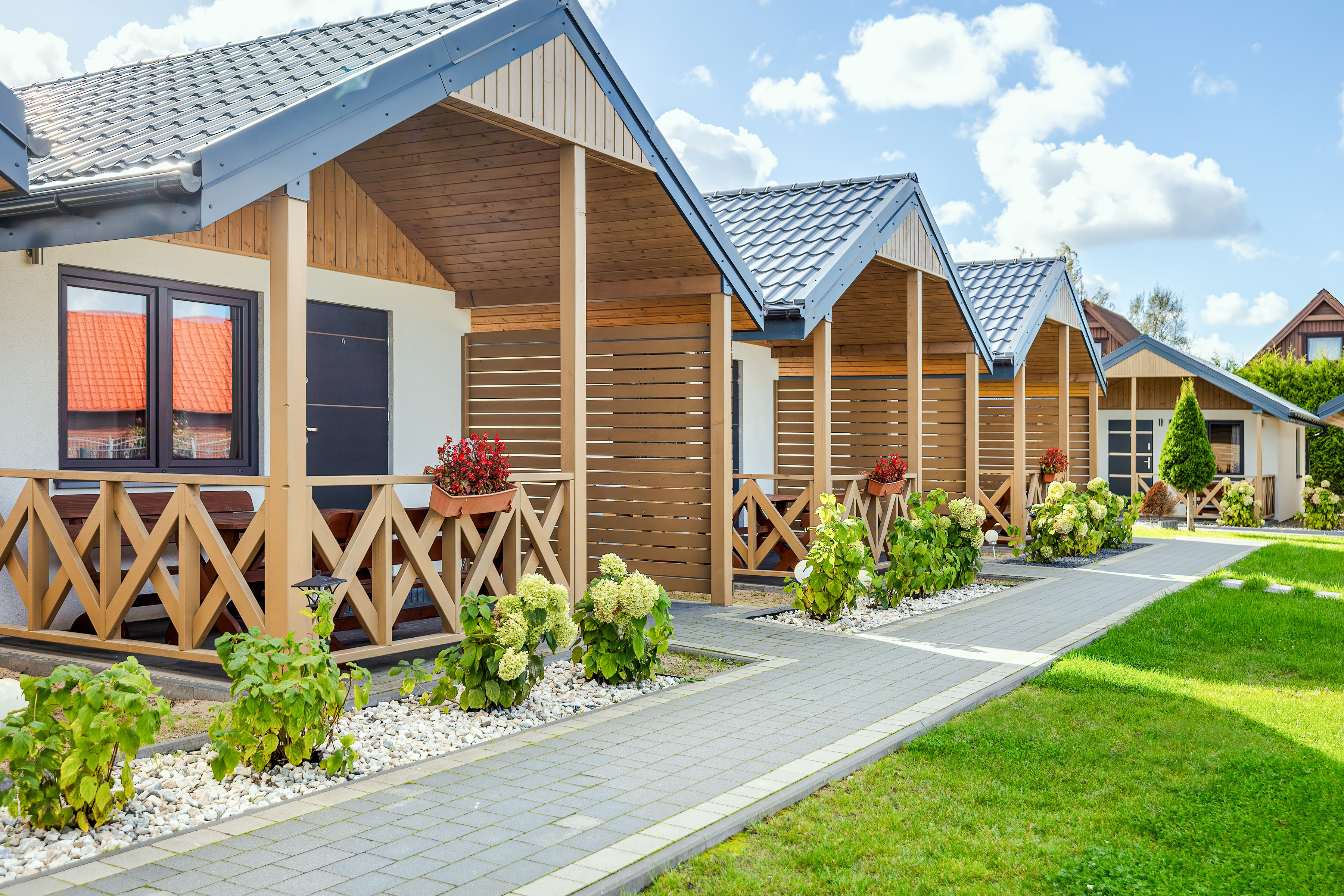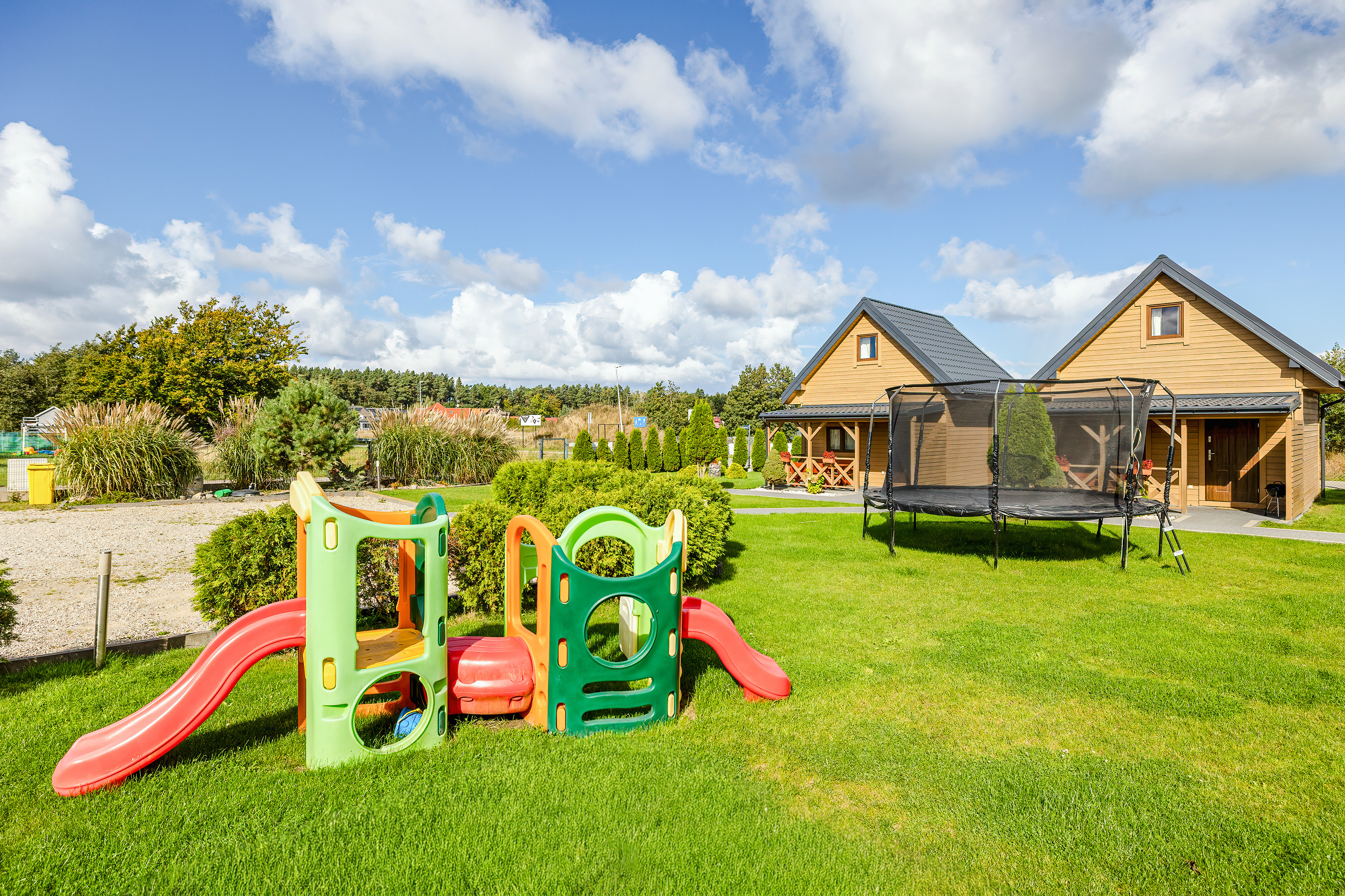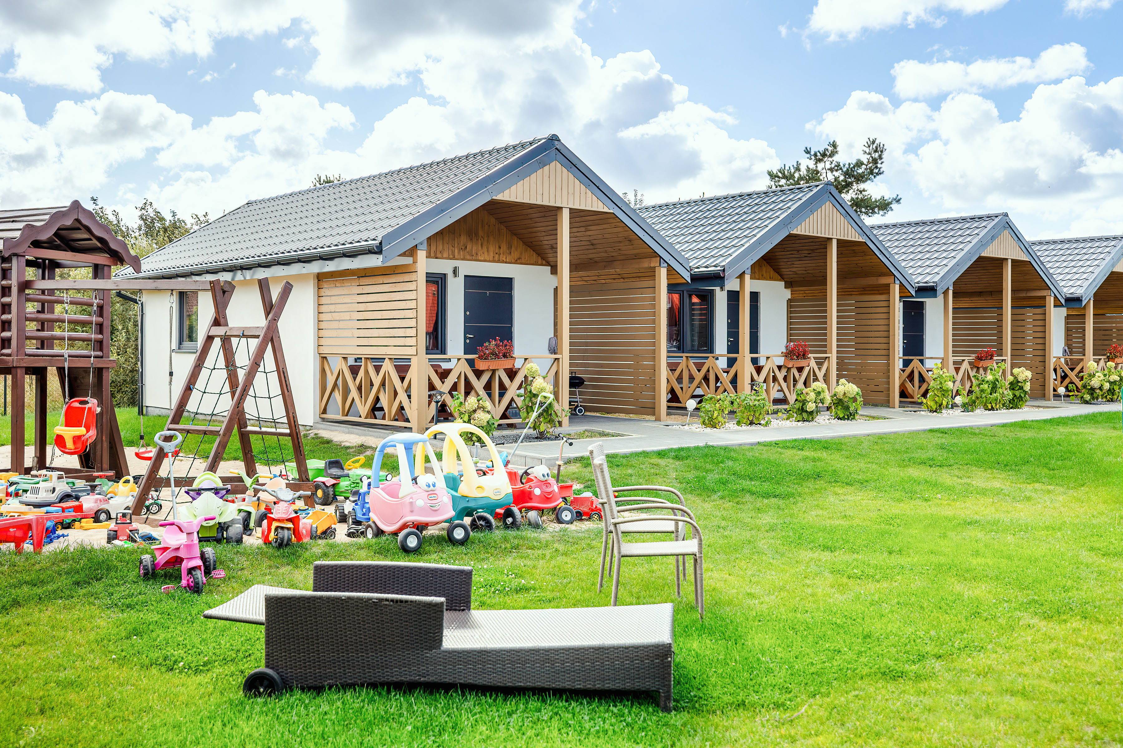 Haus: Sehr gepflegte Ferienhausanlage mit 7 Ferienhäusern auf einem stilvoll angelegtem 2600 qm großen Rasengrundstück, 2021 neu erbaut. In der Anlage: Kinderspielplatz mit Schaukel, Rutsche, kleinem Klettergerüst, Trampolin, Sandkasten. Fahrradverleih (nach Verfügbarkeit, Gebühr).