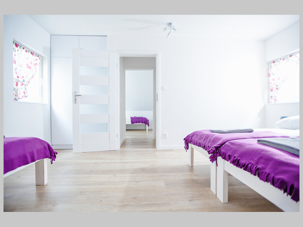 PL 31.29 Ferienhaus 1-5 Pers.: Komfortables, helles 3-Zimmerhaus mit 71 qm Wohnfläche über 2 Etagen. Parterre: Wohn-/Essraum mit Ecksofa (Ausziehcouch 2 Pers.), Flachbild Kabel-TV, Esstisch, kleiner Küchenzeile (2 Induktionsplatten, Mikrowelle). Bad: Dusche, Wb, WC. 1. Etage: 3-Bettzimmer mit Doppelbett, Einzelbett. 2-Bettzimmer. Überdachte Terrasse mit Sitzmöbeln. Achtung: die maximale Belegung des Hauses darf 5 Personen nicht überschreiten.