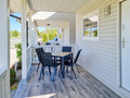 E-Heizung. Warmwasser über E-Boiler (50l). Terrasse mit Sitzmöbeln.