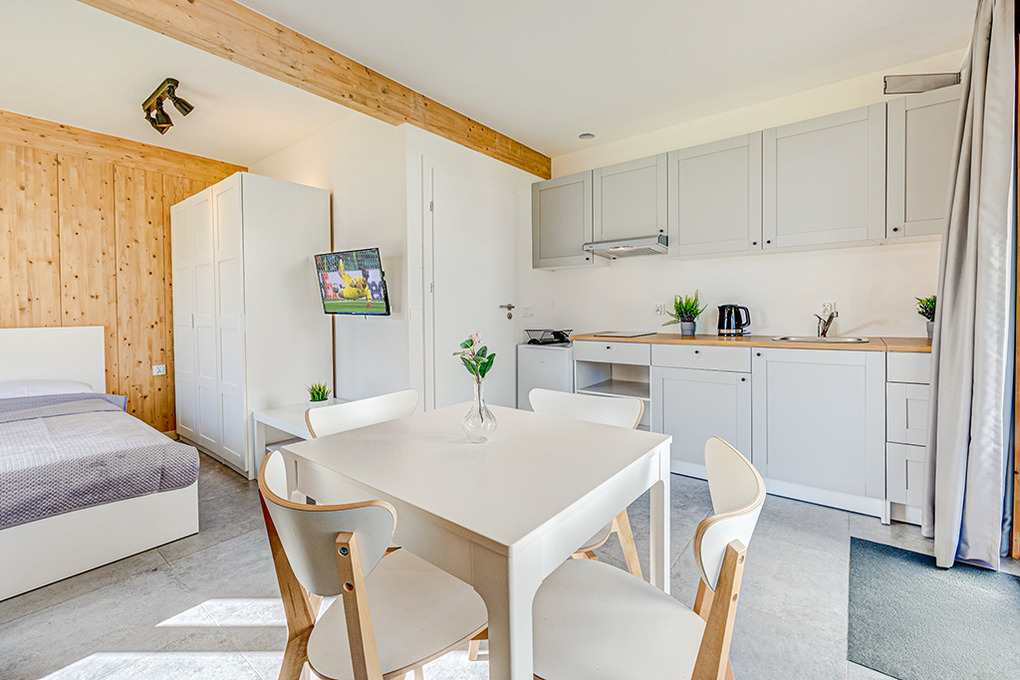 Schöne, komfortable Ferienhäuser mit gemütlicher Einrichtung und großen Terrassen (Sitzmöbel). Alle mit Flachbild Sat-TV (deutsche Programme), kostenlosem Internetzugang über W-Lan. Infrarot-Heizung. Parkplatz auf dem umzäunten Gründstück nach Verfügbarkeit (Gebühr). Weitere Parkplätze auf dem öffentlichen Parkplatz neben der Anlage.