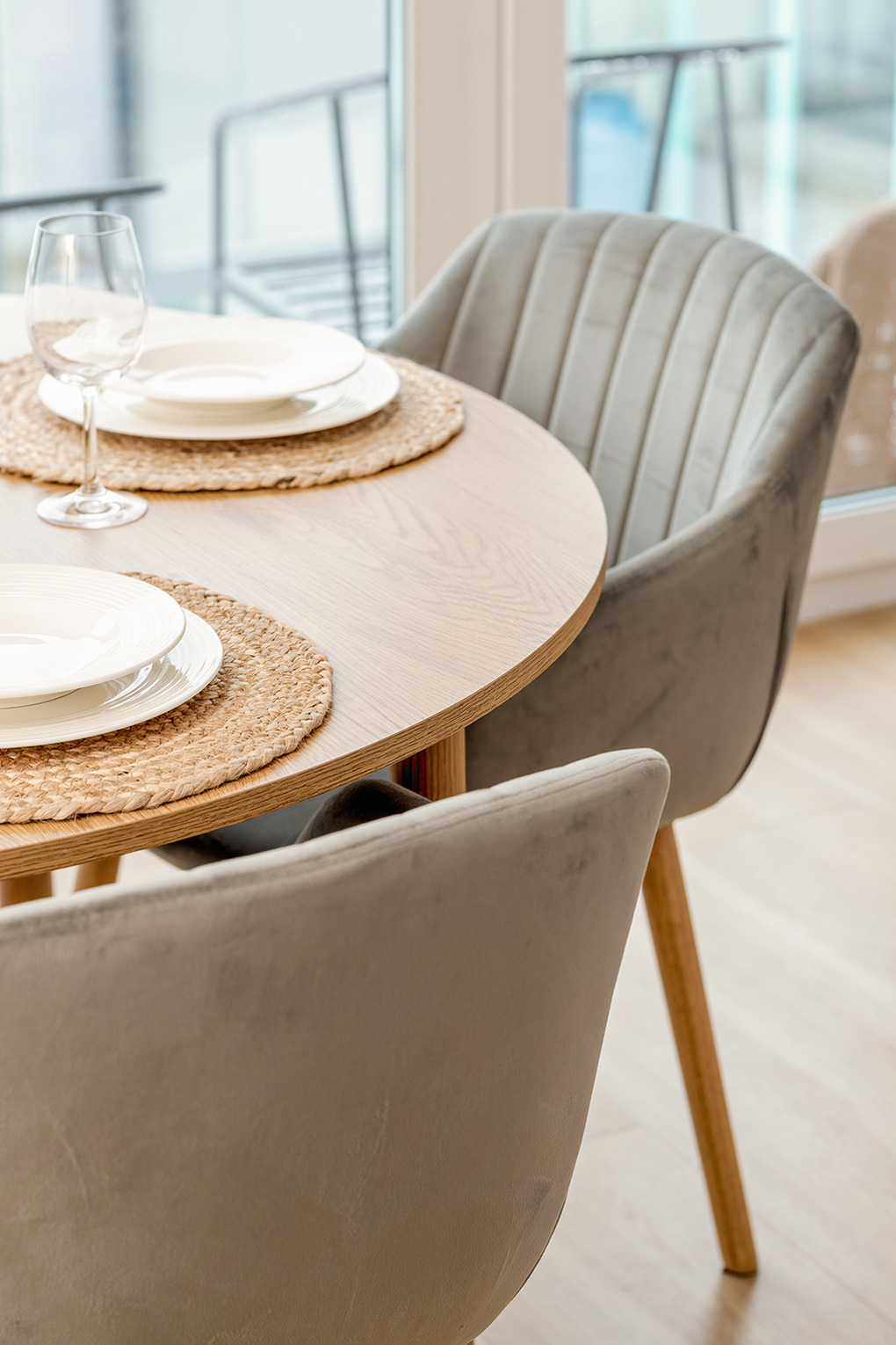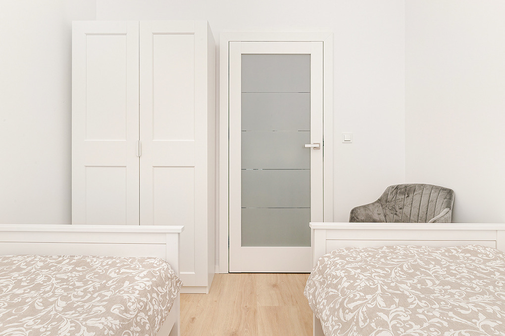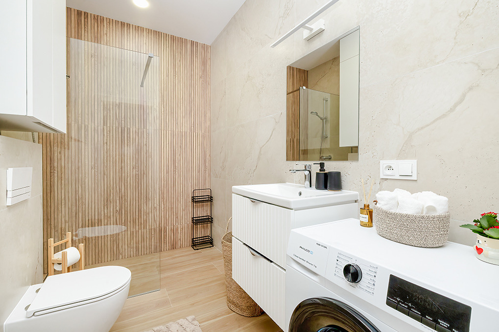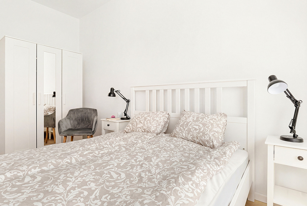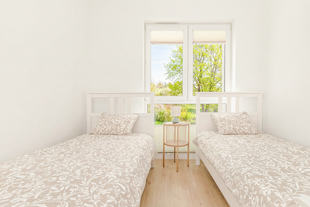 PL 85.21 Wohnung 2-6 Pers.: Hochwertig und geschmackvoll eingerichtete 3-Zimmerwohnung mit 60 qm Wohnfläche, 1. Etage. Wohn-/Essraum mit großer Couchgarnitur (Ausziehsofa 2 Pers.), bodentiefen Fenstern, Flachbild Smart-TV, Internet (WLAN), Esstisch, sehr gut ausgestatteter, moderner Küchenzeile (4 Pl. Induktionsherd, Dunstabzugshaube, Backofen, Spülmaschine, Gefrierschrank (70 l.). Doppelzimmer. Zweibettzimmer. Bad: Du, Wb, WC, Waschmaschine. Balkon mit Sitzmöbeln, Blick auf den darunterliegenden Garten.