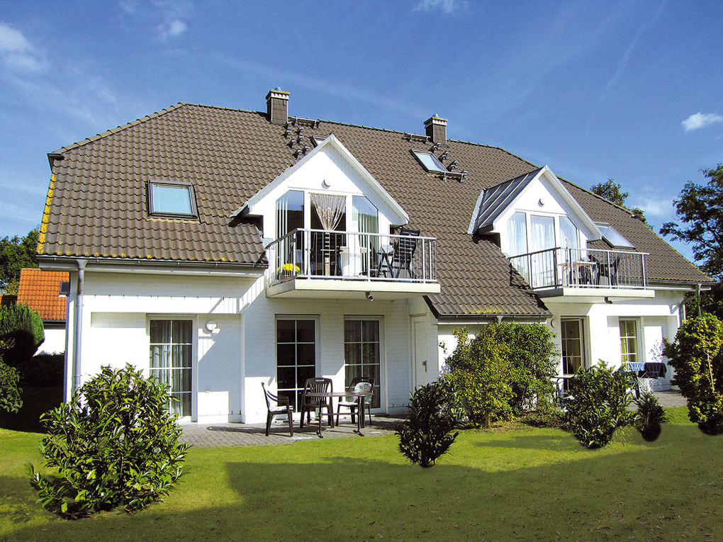 Haus: Drei moderne Apartmenthäuser mit jeweils 4 Ferienwohnungen. Komfortable, geschmackvolle Einrichtung. Zentralheizung. Großer Balkon mit Sitzmöbeln. Fahrradabstellraum. 1 Pkw-Stellplatz.